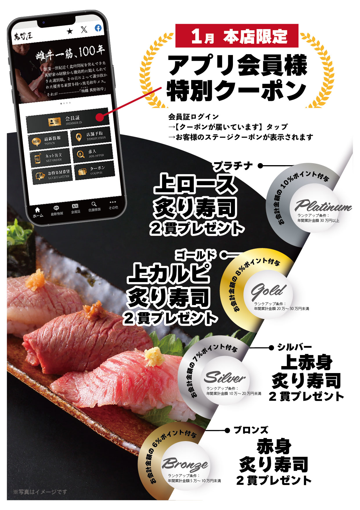いつもご利用くださる皆様にお喜び頂きたく、会員ステージ【ブロンズ】【シルバー】【ゴールド】【プラチナ】のみなさまへ下記店舗にてサービス商品をご提供✨