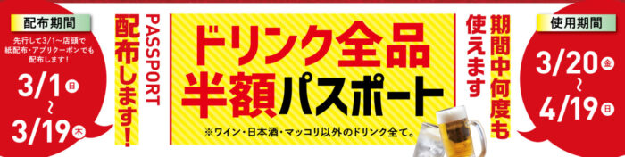 《ドリンク半額パスポート》
