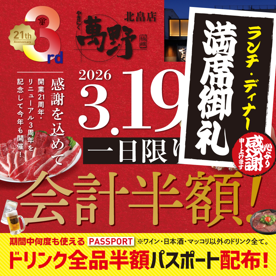 やきにく萬野 北畠店 周年祭