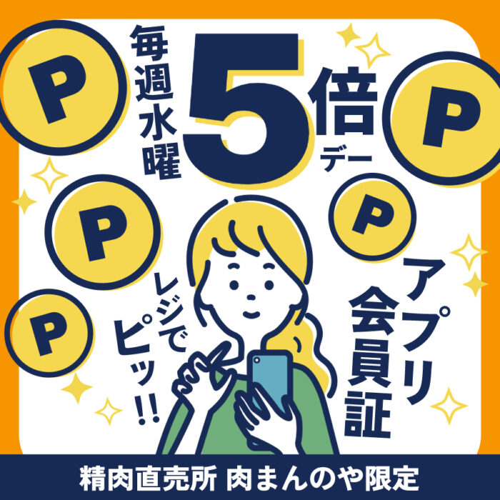 ※通常は精肉店はステージに関わらずお支払い金額の1%でポイント付与(飲食店ではお客様のステージによって5%~10%付与)