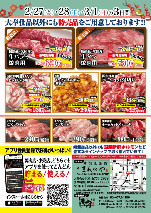 ※各商品・各日、売り切れ次第終了となりますので予めご了承くださいませ。